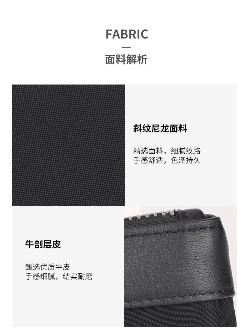 时尚简约手抓包,斜纹尼龙面料,手感舒适,色泽持久;